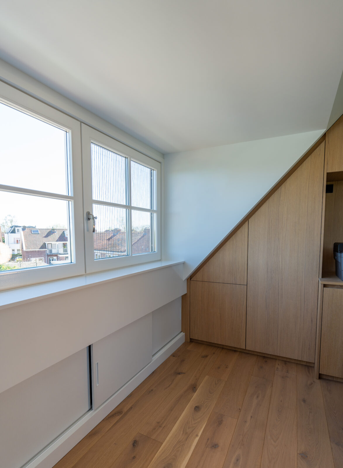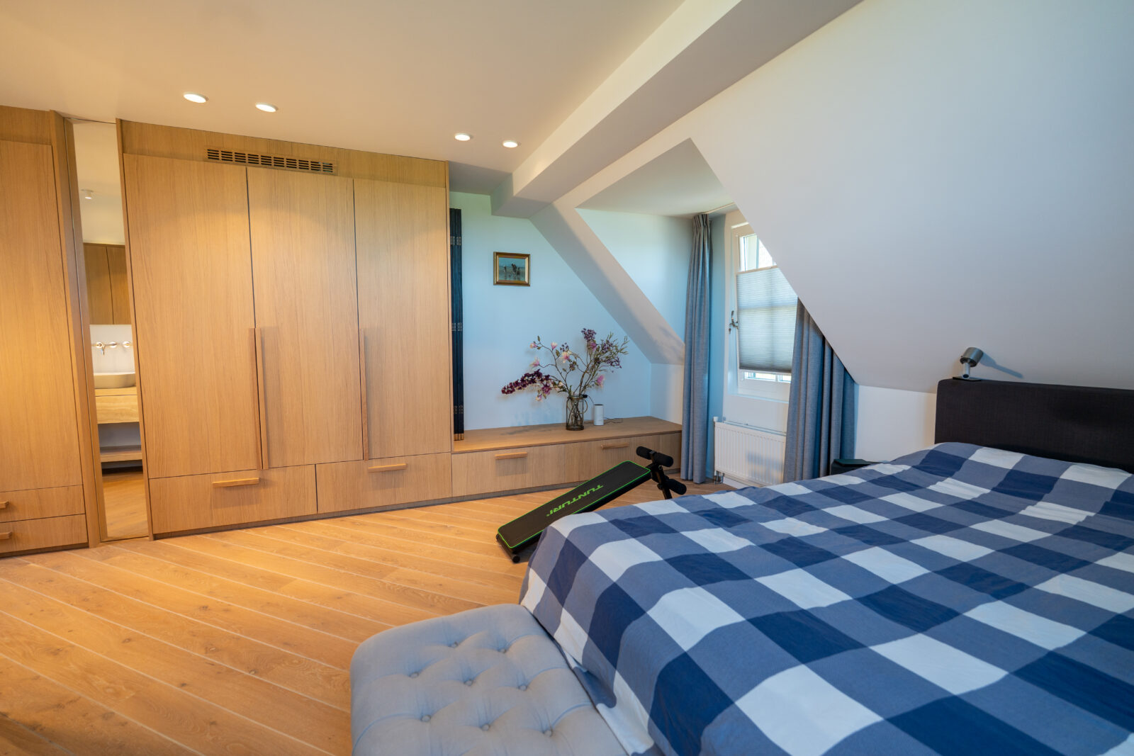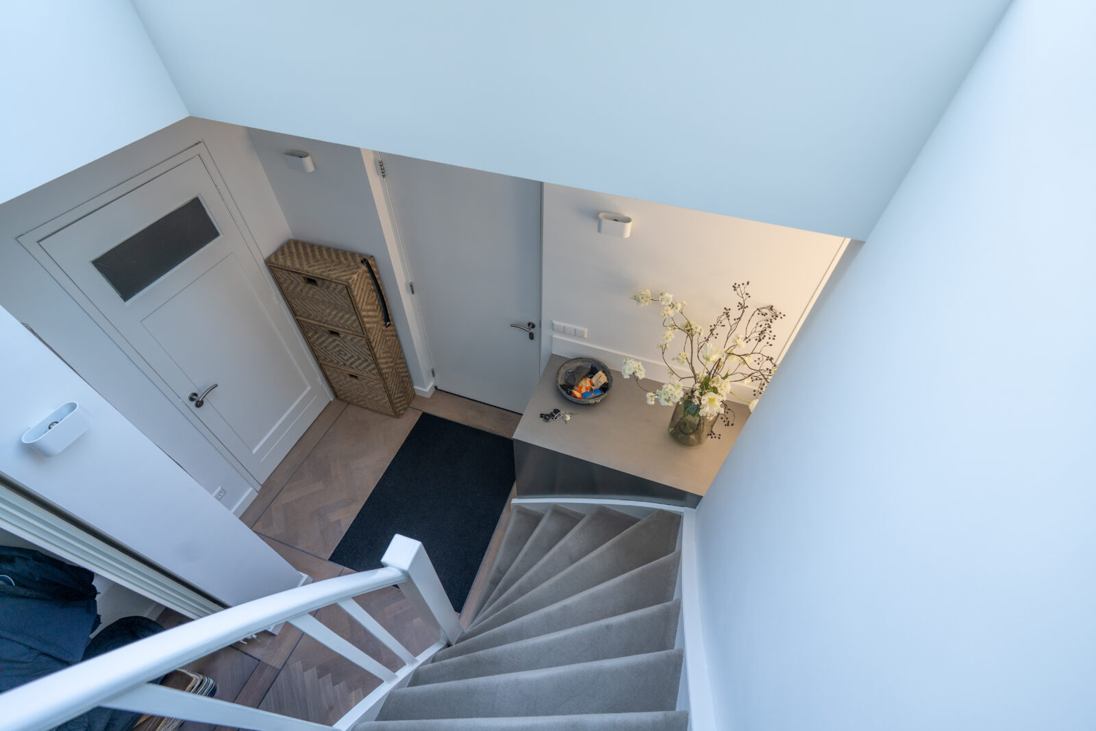 In nauwe samenwerking met architect Jeroen de Nijs hebben wij de eerste en tweede verdieping volledig gerenoveerd. Waar we vijf jaar geleden de basis legden op de begane grond, is de woning nu in zijn geheel naar een hoogwaardig afwerkingsniveau getild. De eerste verdieping is volledig gestript en opnieuw ingedeeld. Er is een luxe badkamer gerealiseerd en het slaapgedeelte is voorzien van hoogwaardige inbouwkasten. Door te kiezen voor maatwerk is elke centimeter optimaal benut. Voor een optimaal klimaat in de zomermaanden is er een onzichtbaar geïntegreerd airco-systeem geplaatst. Op de tweede verdieping stond het creëren van ruimte en licht centraal. Door dakkapellen aan zowel de voor- als achterzijde te plaatsen, is er een ruimtelijk kantoorgedeelte ontstaan. Ook hier is de lijn van de woning doorgetrokken met strakke inbouwkasten, airconditioning en een afwerkingsniveau dat tot in het kleinste detail klopt.