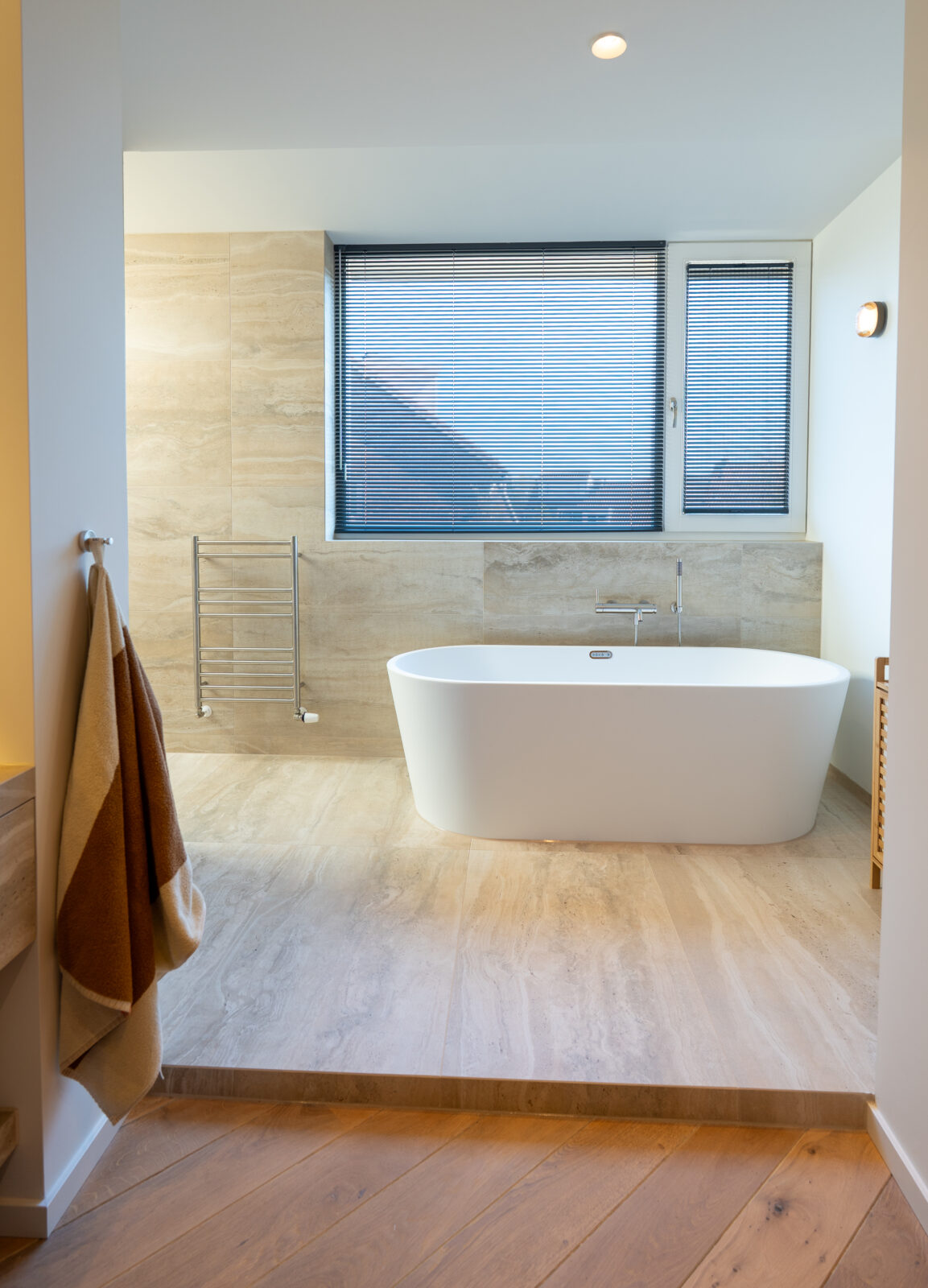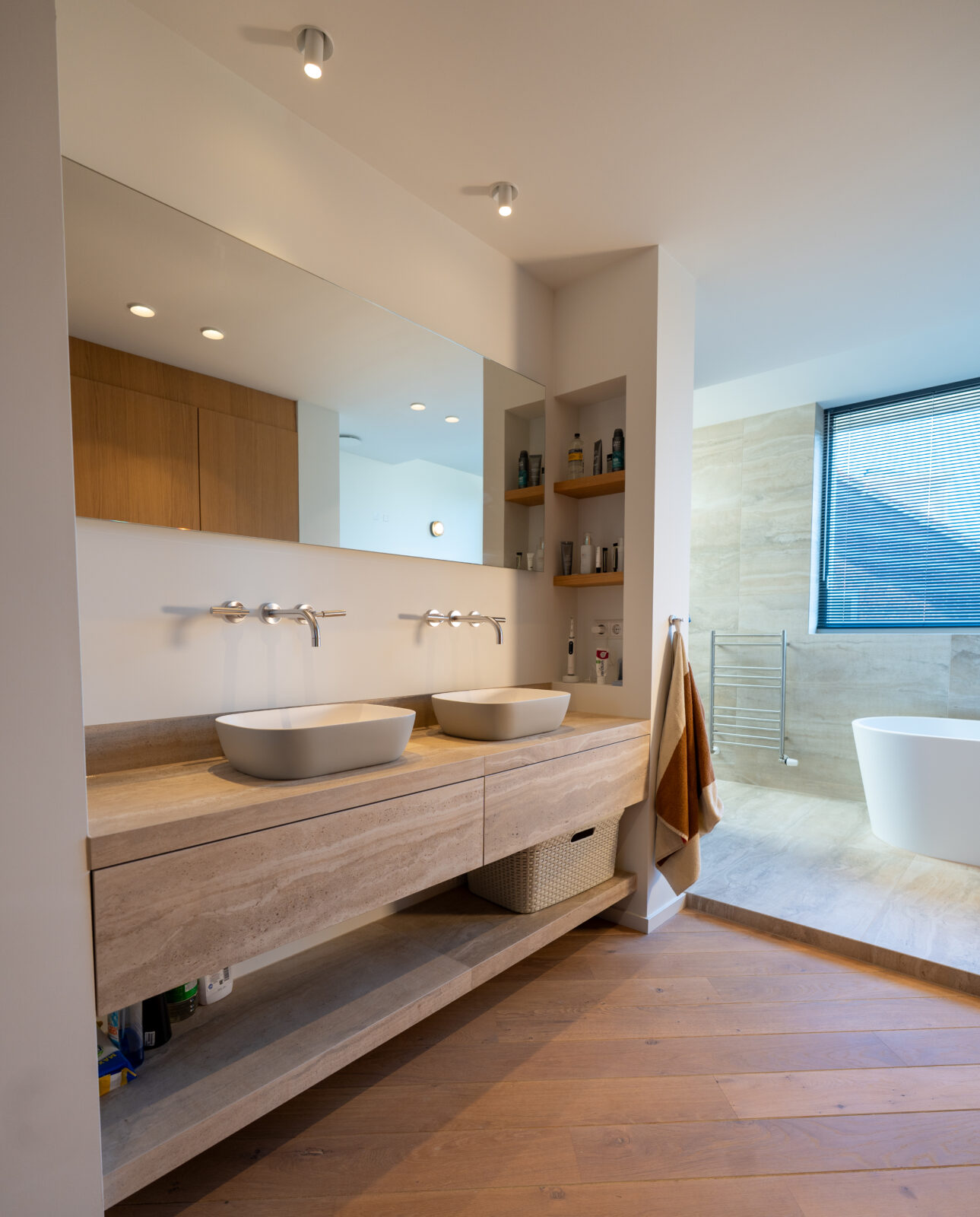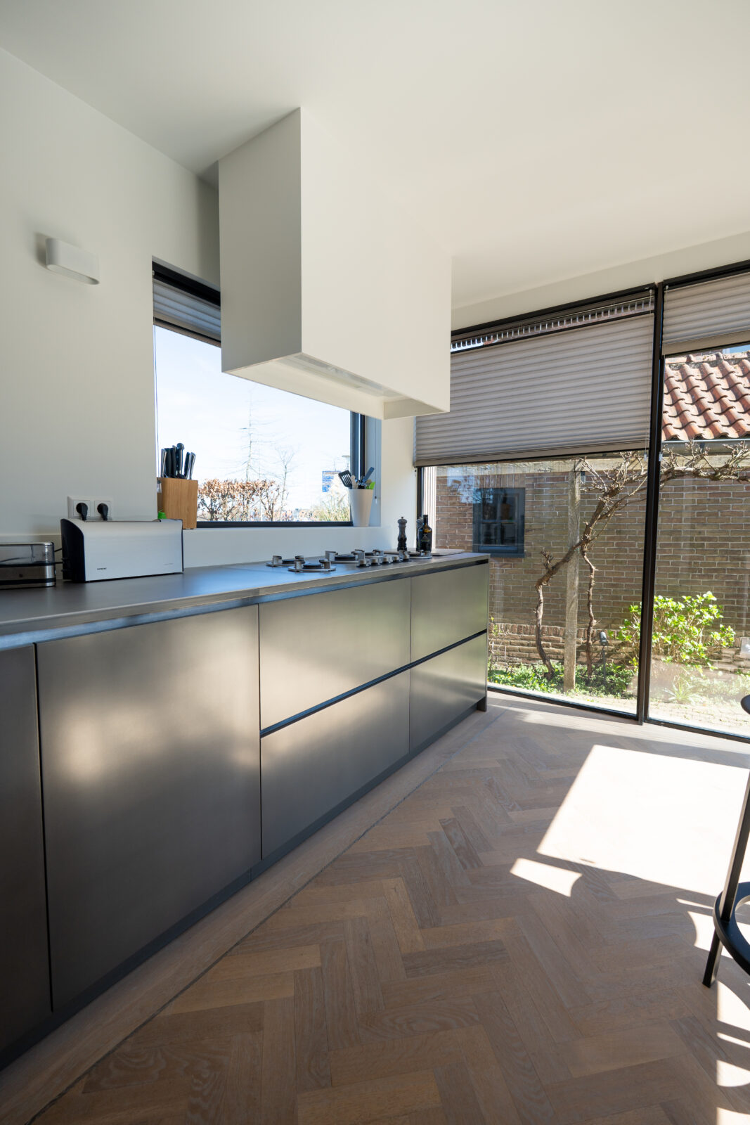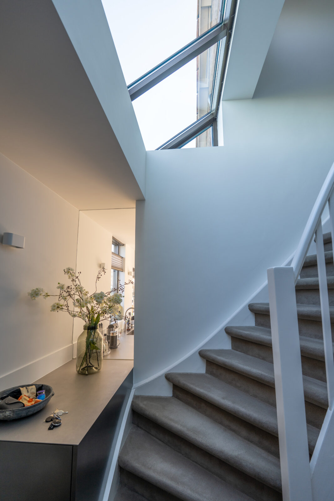 In nauwe samenwerking met architect Jeroen de Nijs hebben wij de eerste en tweede verdieping volledig gerenoveerd. Waar we vijf jaar geleden de basis legden op de begane grond, is de woning nu in zijn geheel naar een hoogwaardig afwerkingsniveau getild. De eerste verdieping is volledig gestript en opnieuw ingedeeld. Er is een luxe badkamer gerealiseerd en het slaapgedeelte is voorzien van hoogwaardige inbouwkasten. Door te kiezen voor maatwerk is elke centimeter optimaal benut. Voor een optimaal klimaat in de zomermaanden is er een onzichtbaar geïntegreerd airco-systeem geplaatst. Op de tweede verdieping stond het creëren van ruimte en licht centraal. Door dakkapellen aan zowel de voor- als achterzijde te plaatsen, is er een ruimtelijk kantoorgedeelte ontstaan. Ook hier is de lijn van de woning doorgetrokken met strakke inbouwkasten, airconditioning en een afwerkingsniveau dat tot in het kleinste detail klopt.